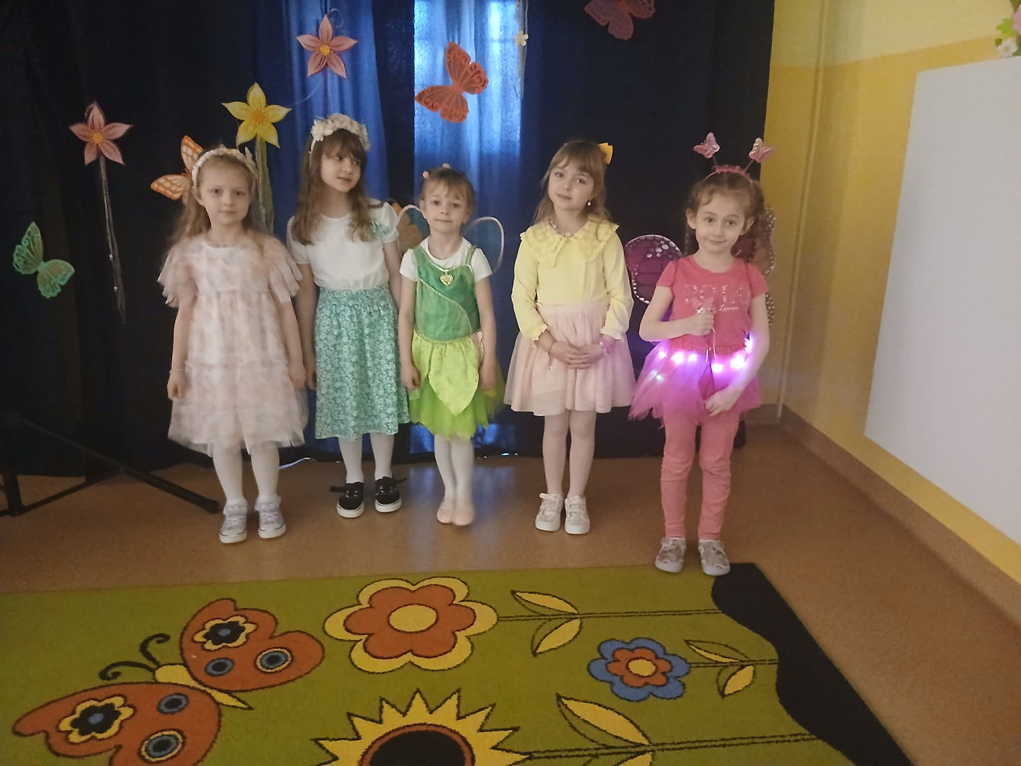 Dzieci przyszły ubrane w barwne stroje – pojawiły się kwiatuszki, pszczółki, motylki, a także żabki i biedronki. Największą atrakcją był DJ, który puszczał wesołą muzykę i zachęcał wszystkich do wspólnej zabawy. Dzieci tańczyły, brały udział w różnych zabawach ruchowych i konkursach, a uśmiech nie znikał z ich twarzy. Całe wydarzenie przebiegło w miłej i przyjaznej atmosferze, a wspólna zabawa na długo pozostanie w pamięci przedszkolaków.