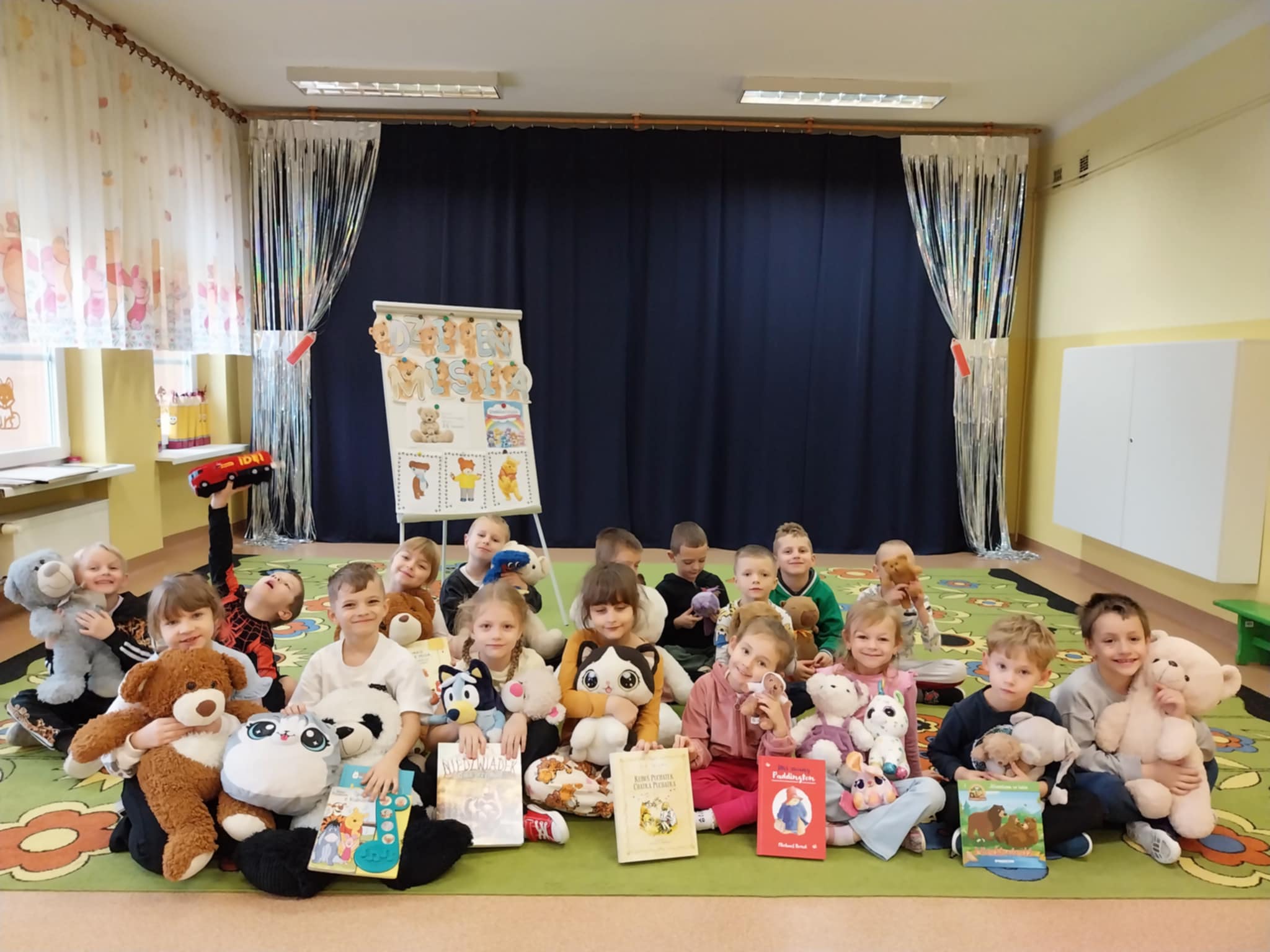 Dzień Pluszowego Misia to jedno z najbardziej wyczekiwanych świąt w naszym przedszkolu. Tego dnia sale wypełniły się miękkimi, kolorowymi bohaterami – od malutkich, kieszonkowych misiów po duże, puchate przytulanki, które trudno było objąć rękami. Każde dziecko z dumą przyniosło swojego ulubionego pluszowego przyjaciela i chętnie opowiadało jego historię: skąd pochodzi, jak ma na imię i czym jest dla swojego właściciela.
