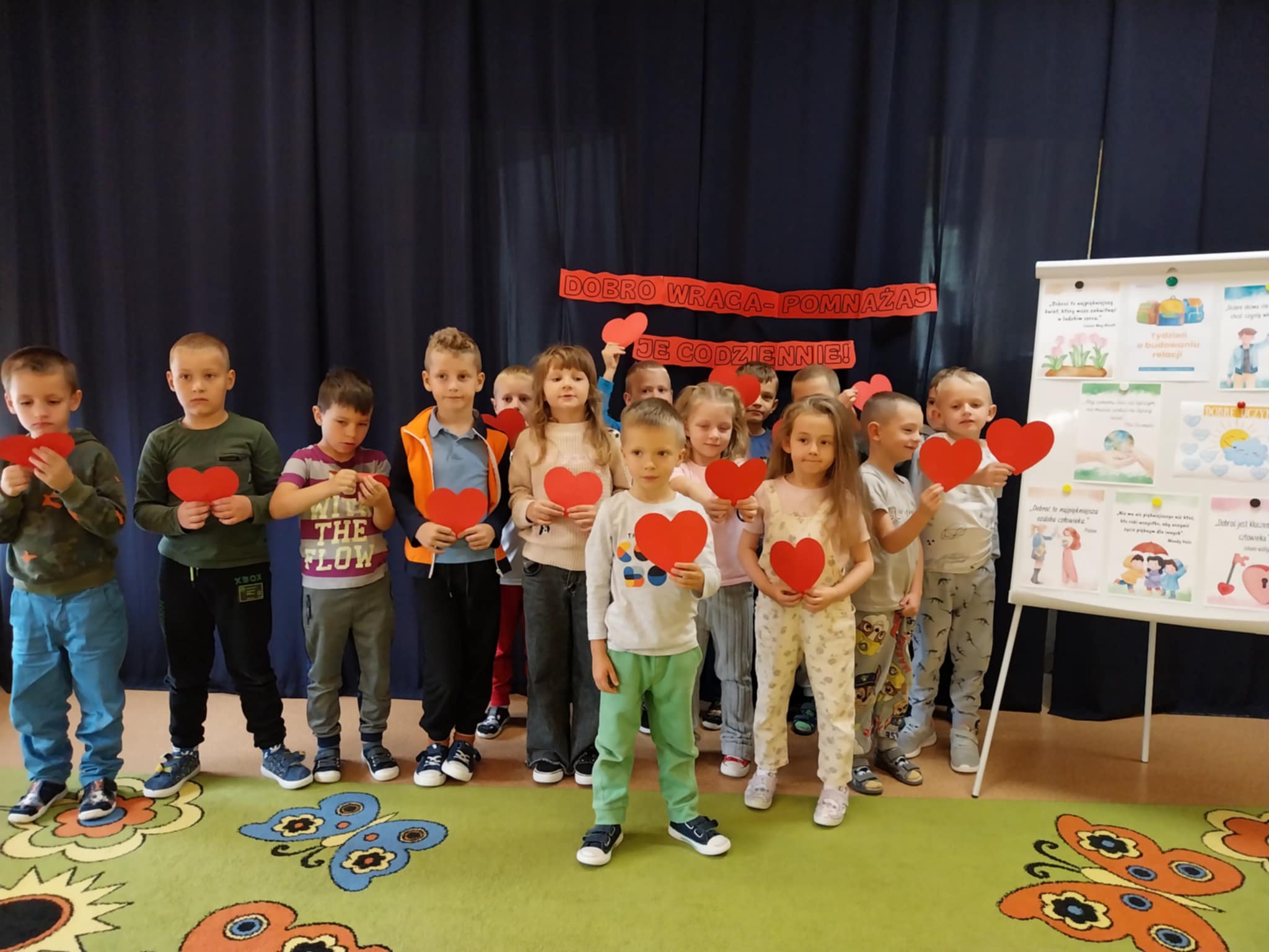"Tydzień Budowania Relacji" to ogólnopolska inicjatywa Ministerstwa Edukacji Narodowej, w ramach której nasze przedszkole wzięło udział w cyklu spotkań poświęconych temu zagadnieniu. Celem inicjatywy było rozwijanie umiejętności społecznych dzieci, uczenie empatii, współpracy i rozwiązywania konfliktów, a także wzmacnianie pozytywnych więzi w grupie. Każdego dnia skupialiśmy się na innym aspekcie relacji międzyludzkich, realizując różnorodne zabawy, rozmowy i działania integracyjne przy wsparciu psychologa szkolnego. Dzieci z najstarszej grupy "Biedronki" aktywnie uczestniczyły w zajęciach, chętnie dzieliły się swoimi przeżyciami, uczyły się współpracy i empatii.